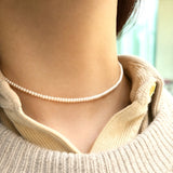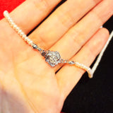 - Natural cultured white oblate pearl necklace with 925 silver rose clasp: 435mm(L) x 2.5mm(W). Rose clasp can be worn front or back for two different looks