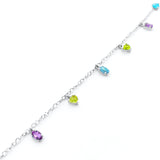 [Clearance] 18K/750 White Gold Amethyst, Yellow Topaz & Blue Topaz Charm Bracelet/Anklet