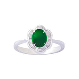 18K/ 750 White Gold Imperial Jade and Diamond Flower Ring