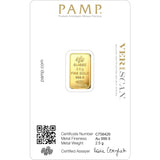 PAMP Suisse 24K/999.9 Gold 2.5 gram Lady Fortuna Collectible Gold Bar