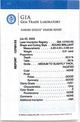[Clearance] GIA Certified Round Loose Diamond, 0.31 Carat, E Colour, VVS1, H&A, Year 2003
