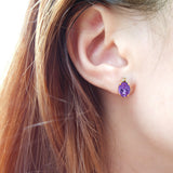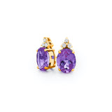 18K/750 Rose Gold Oval Shaped Amethyst and Diamond Earrings