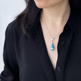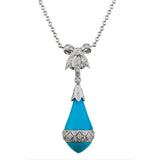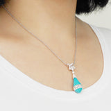 [Clearance] 18K/750 White Gold Two Way Ribbon Turquoise & Diamond Necklace