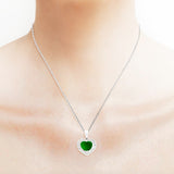 18K/750 White Gold Heart Shaped Imperial Jade and Diamond Pendant